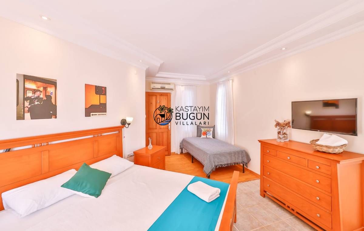 Kaş Bayındır köyünde 4 yatak odalı ve 4 banyolu özel havuzlu bir villamızdır. Yeşillikler içinden muhteşem manzarası ile size keyifli bir tatil sunacaktır.